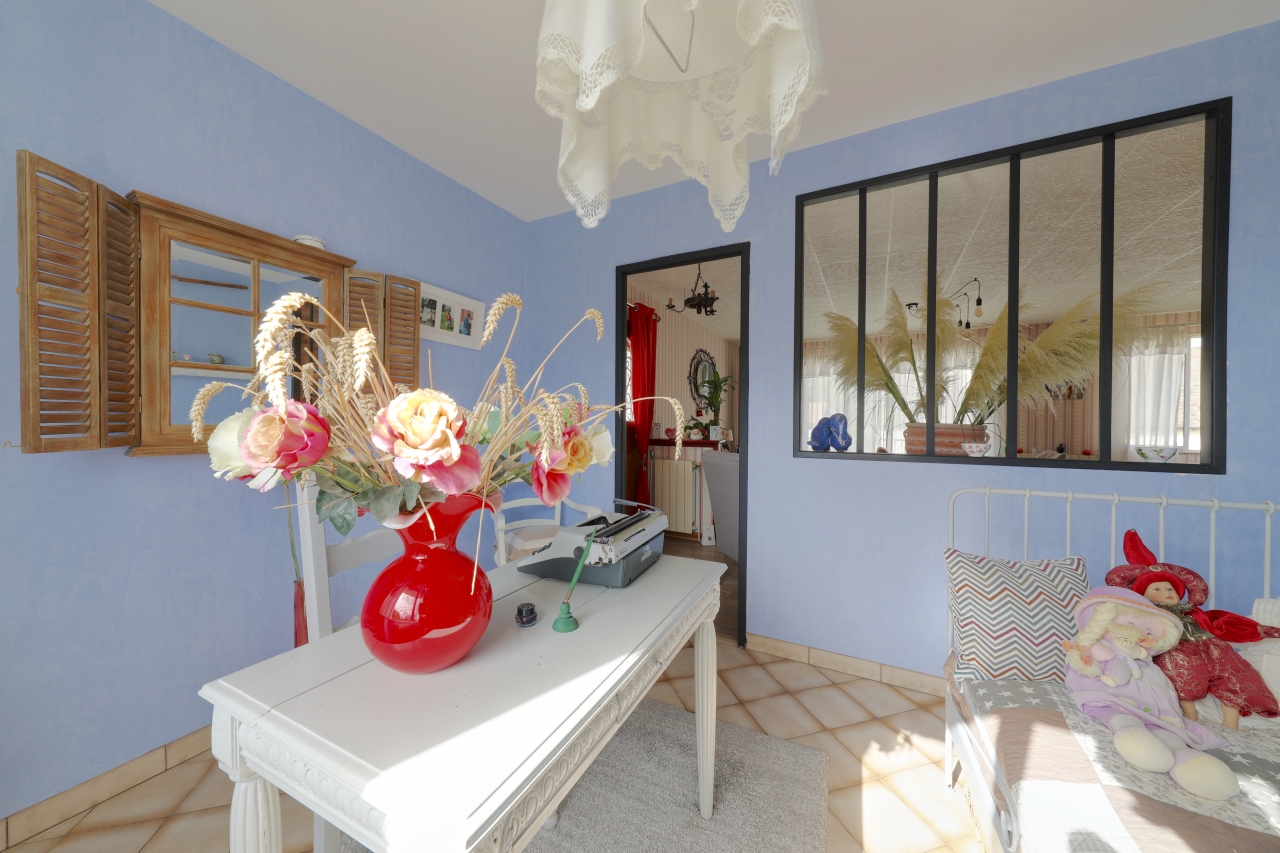 À l'étage, vous découvrirez un beau séjour desservant deux belles chambres, un bureau lumineux, une salle de bain avec ses toilettes, offrant assez d'espace pour accueillir toute la famille.