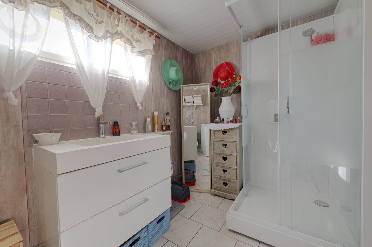 Au rez-de-chaussée, vous trouverez une cuisine spacieuse, une salle à manger, une chambre et d'une salle d'eau avec toilettes.