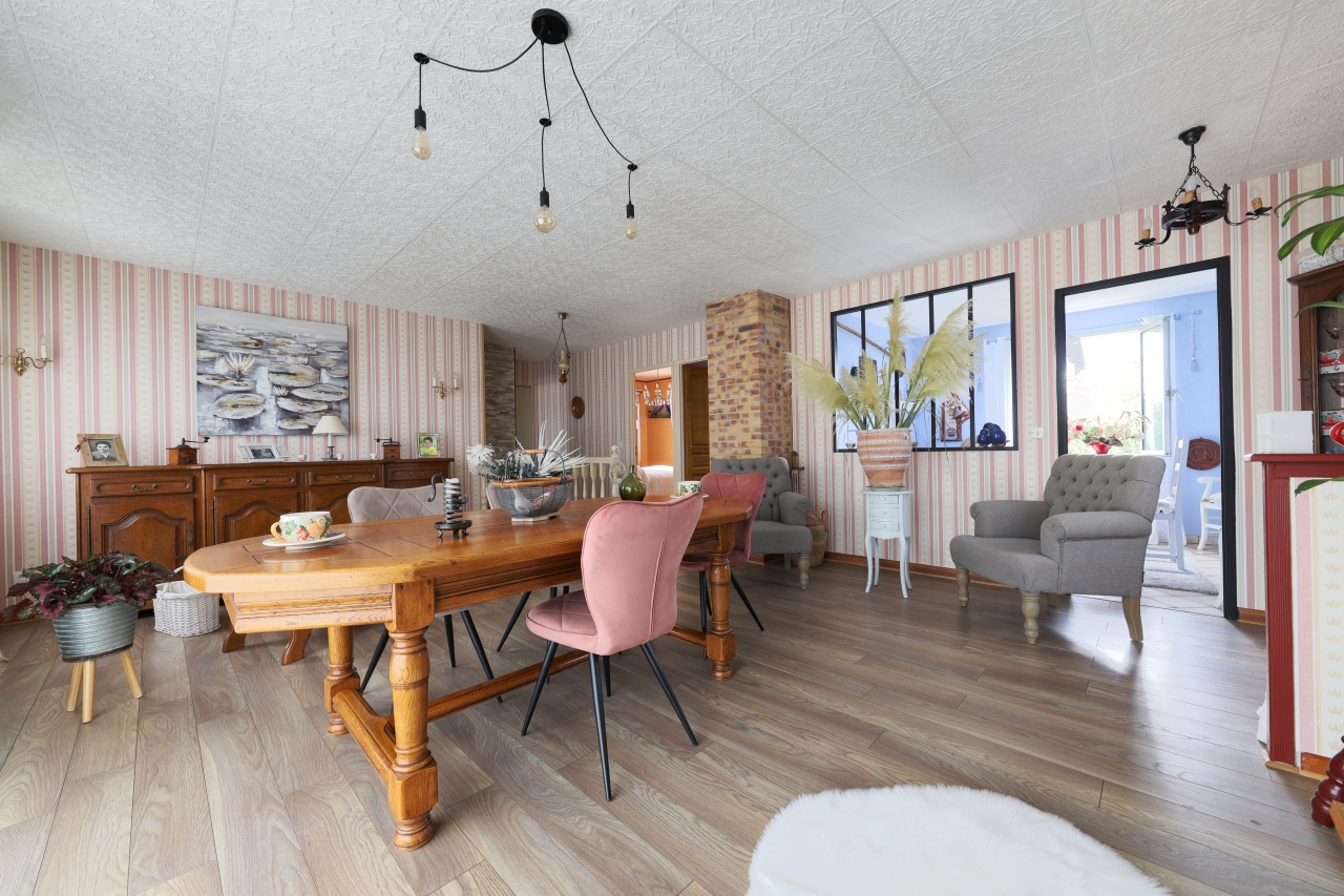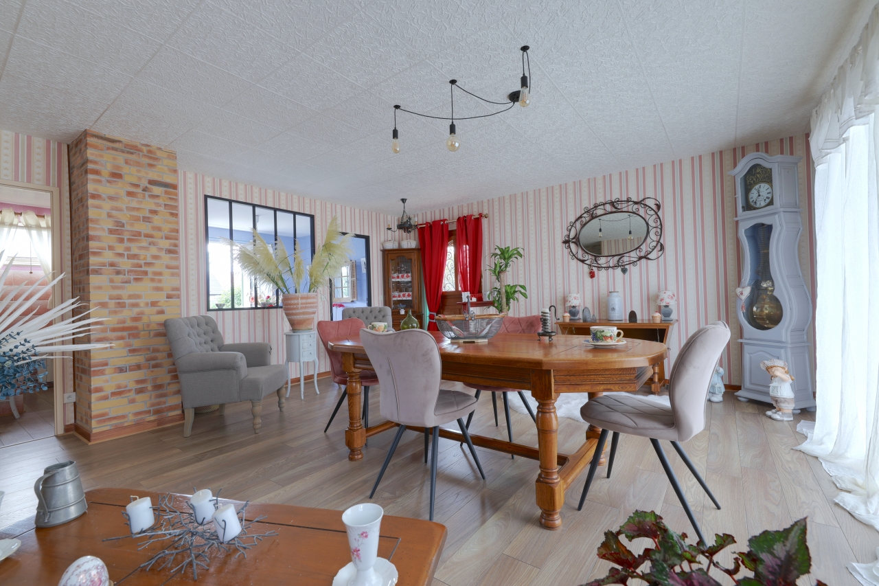 Cette maison dispose également d'un magnifique jardin de 1036 m² entièrement clos, d'une terrasse avec store banne, d'arbres fruitiers, chalet et barbecue pour profiter des beaux jours.
