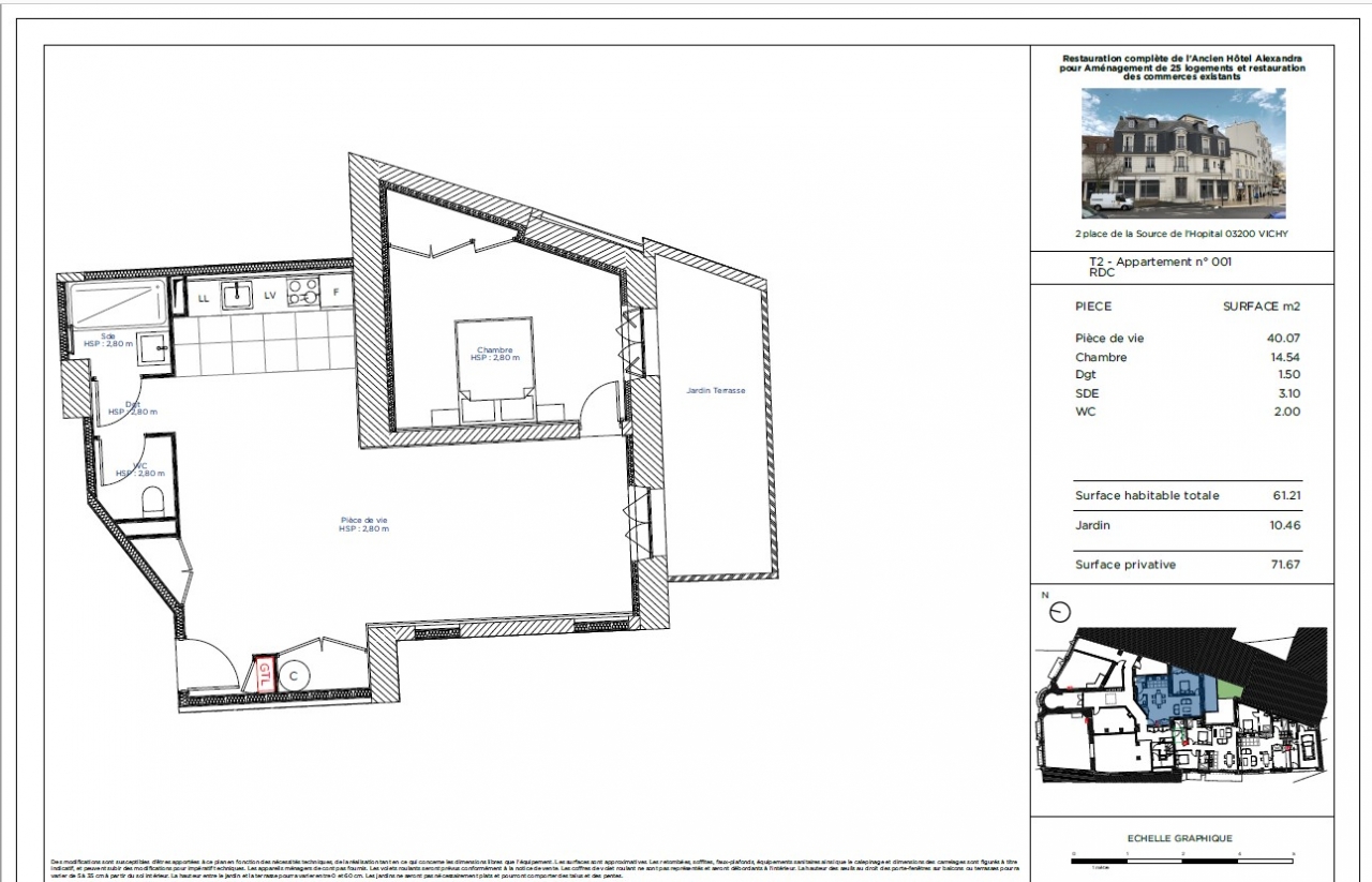 Situé au cœur du Vieux Vichy, dans la prestigieuse résidence "L’Alexandra", cet appartement de 61,21 m² s'accompagne d'un jardin privé de 10,46 m². Ce bien d'exception se compose de :