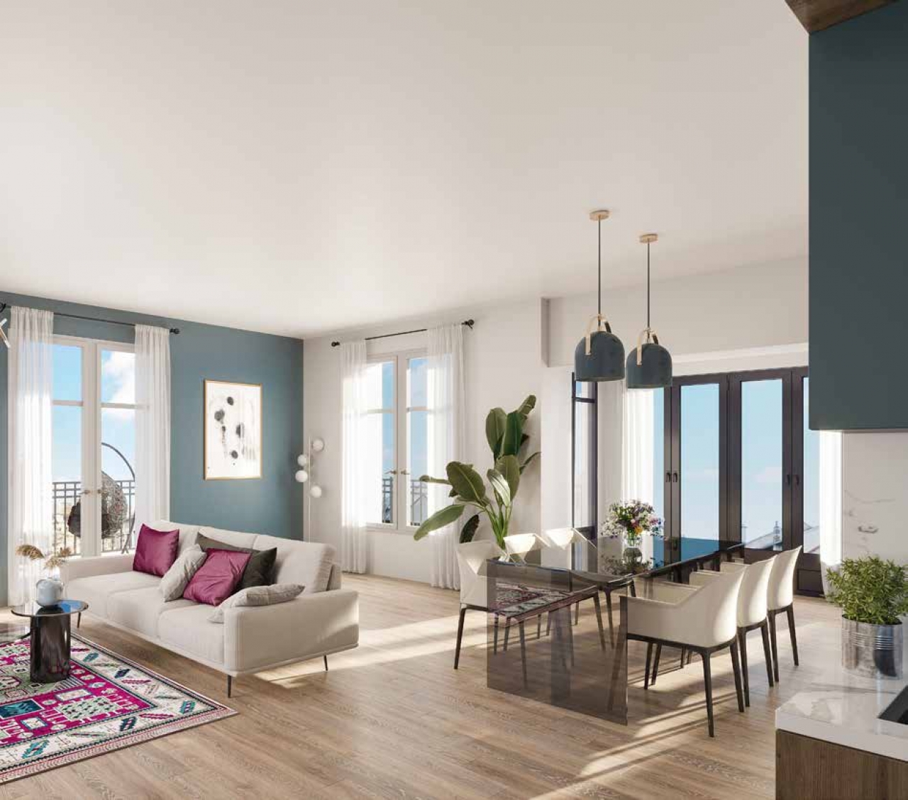 - Une spacieuse pièce de vie de 40,77 m² baignée de lumière.