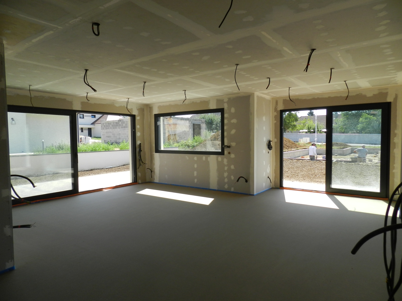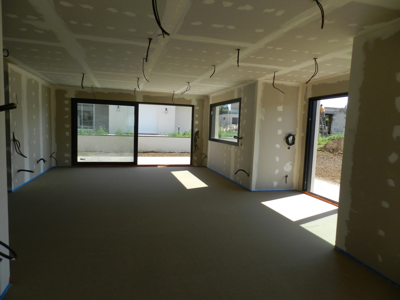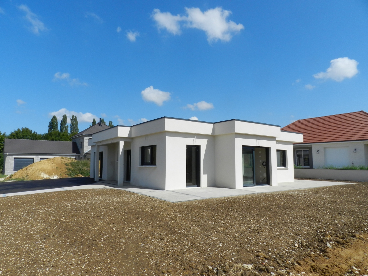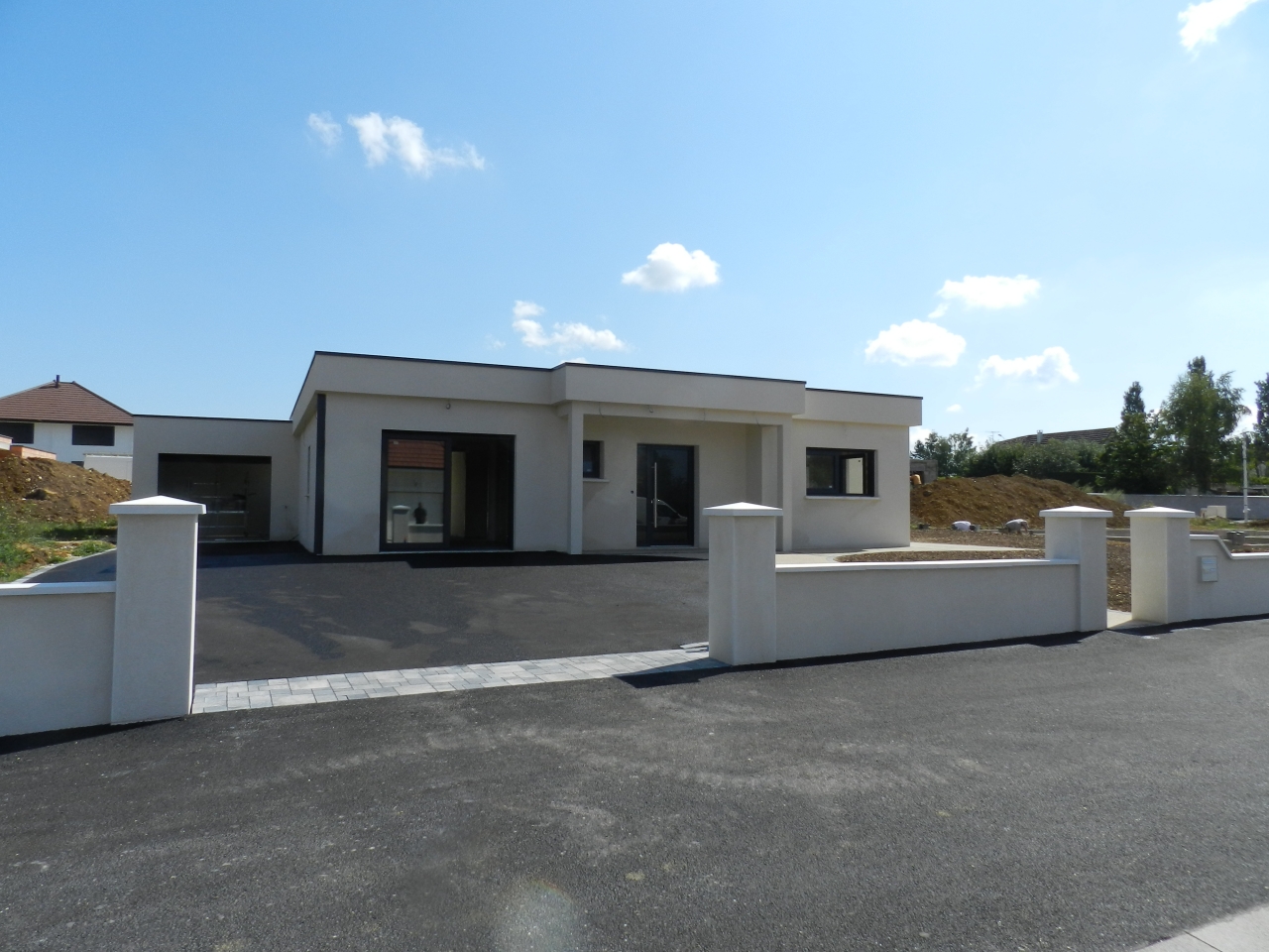 DOLE ,quartier prisé au calme, maison neuve 2019 de plain pied en cours de finitions, très hautes prestations, normes RT 2012 comprenant : 1 entrée, 1 cuisine ouverte sur 1 salon séjour de 52.10 m² , 3 chambres de 17.20 m² , 17 m² et 14.40 m², 1 salle d'eau, douche italienne , 2 wc , 1 cellier. Garage de 24 m² carrelé porte isolante motorisé, terrain clos de 635 m² ( le terrain est pris en charge par un paysagiste, déco, béton désactivé,pelouse, terrasse carrelée) . Chauffage au sol pompe à chaleur et ballon thermodynamique pour l'eau chaude ( très économique pour vos factures) . Volets électriques, centralisation. Taxe foncière exonération 2 ans. DPE : A / B . 305 000 euros . honoraires à la charge du vendeur.